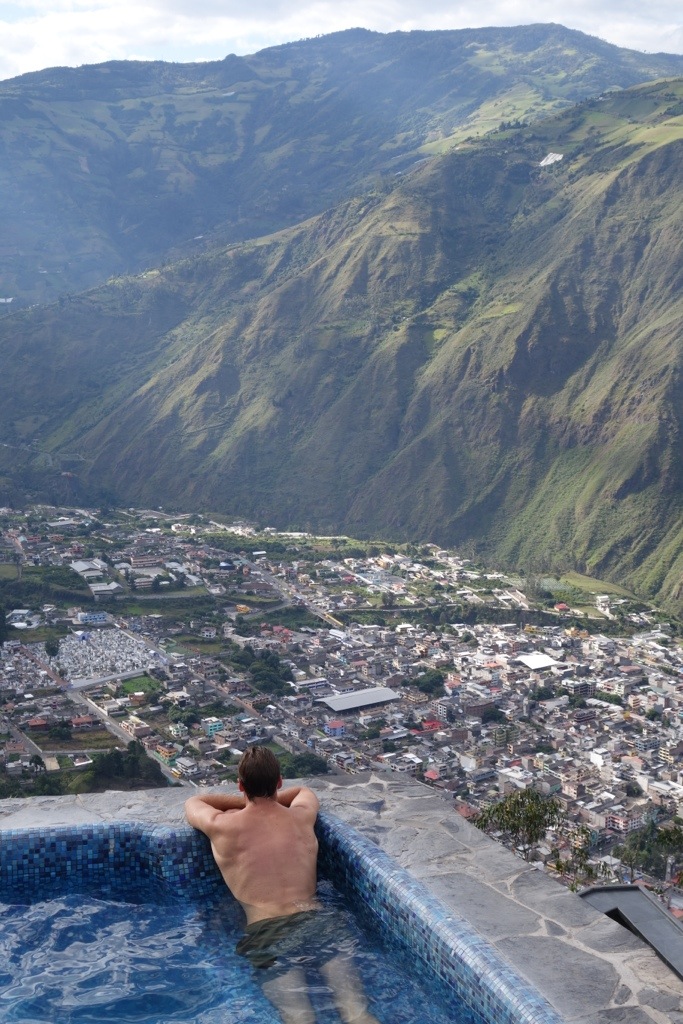 Im Moment befinde ich mich auf dem Weg tief in den Amazonas. Weil ich da aber noch nicht bin und bis ein geplatzer Reifen noch keine besonderen Vorkommnisse zu verzeichnen sind, erzähle ich euch von meiner Zeit Baños, wo ich Neujahr verbracht habe. Ich weiß, es ist verwirrend, aber ich spreche nicht vom Badezimmer (Spanisch: Baños, Euphemismus für “Klo”), also nicht verwechseln. Das will auch keiner hören. Die Rede ist von der Stadt, drei Stunden Busfahrt für 3,50 Dollar, südlich von Quito.