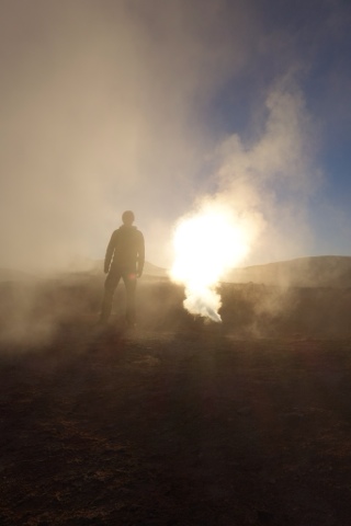 Am letzten Tag folgt ein weiteres Highlight: die bis zu 200 Grad heißen Dampferruptionen der Geysiere. Das Naturschauspiel ist morgens bei Sonnenaufgang am Besten zu beobachten und bietet ein sensationelles, fast mystisches Licht-Setting. Ein weiteres Mal springe ich in natürliche heiße Quellen und lasse es mir im künstlich angelegten Becken gut gehen, bevor es über die Grenze nach San Pedro de Atacama geht.