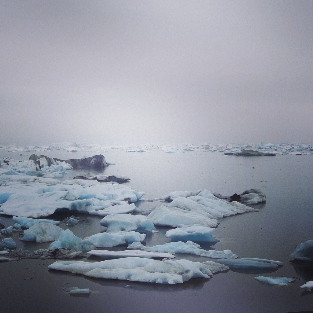 Auch Jökulsárlón disqualifiziert sich als “Ort” völlig (außer das stille Örtchen ist das hier geltende Kennzeichnungskriterium?), dafür bekommt man ein einzigartiges Naturschauspiel zu sehen: Dort, wo einst noch der riesige Gletscher ins Meer hinein ragte, hat sich im Zuge der Schmelze im Laufe von 100 Jahren eine recht große Lagune gebildet. Die kann man sich heute anschauen und ist deswegen interessant, weil sich vom Gletscher abbrechendes Eis hier ansammelt um sich binnen weniger Jahre endlich dem unausweichlichen Schicksal zu fügen: das einströmende Salzwasser fördert den Schmelzprozess und zieht die Eisbrocken in die Bucht, wo sie von der gnadenlosen Brandung weiter zermürbt werden und schließlich zerfallen. Im Amphibienfahrzeug oder im Schlauchboot kann man hier ganz nah an die türkisblau schimmernden Eisberge heranfahren. Ab und an grüßen die hiesigen Robben recht freundlich (in dem sie den Kopf aus dem Wasser ragen und uns komplett ignorieren), und auch Möven gibt es hier zuhauf. Spannendes Ambiente, inmitten der Bucht an den Eisschollen vorbei zu tuckern, zu hören, wie sie brechen oder sie sich kippen, weil sie durch die Schmelze permanent ihren Schwerpunkt verlagern. Man darf an Board sogar mal ein Stück Eis probieren. Es schmeckt köstlich.