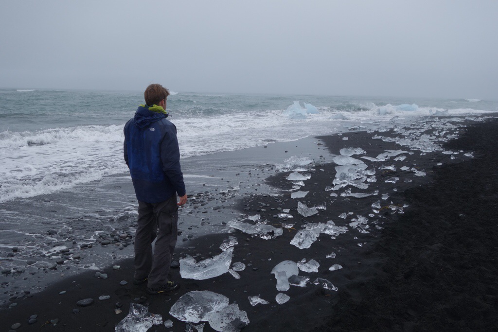 Die tief stehende Sonne wirft lange Schatten über die dicht bewachsenen, großflächigen Moosfelder. Alle paar Kilometer steigen schwere weisse Dampfwolken aus der Erdkruste empor. Fährt man im Fahrzeug entlang der berühmten Ringstraße die Südküste entlang Richtung Osten, wechselt die Landschaft im Minutentakt ihr Gesicht: gerade noch in der mit Felsen übersähten Tiefebene, wird die surreale Mondlandschaft von steil abfallenden, grünen Hochplateaus abgelöst: Allenorts fallen kleine Flüsse und Bäche der Schwerkraft zum Opfer, schmale und teils gigantische Wasserfälle bahnen sich ihren Weg zum Meer. Die vielen trockenen und fließenden Spurrinnen sind entweder Zeugnis ehemaliger Gletscheraktivität oder kanalisieren den starken Regen nach unten. Plötzlich ragen gewaltige Gletscherzungen aus dem Hochland gen Süden und machen es mir unmöglich den phantastischen Blick auf das Meer zu genießen – ich richte meine Aufmerksamkeit also wieder auf meine linke Flanke und beobachte, wie sich die Eismassen ihren Weg um die steinigen Berkkuppen herum bahnen.