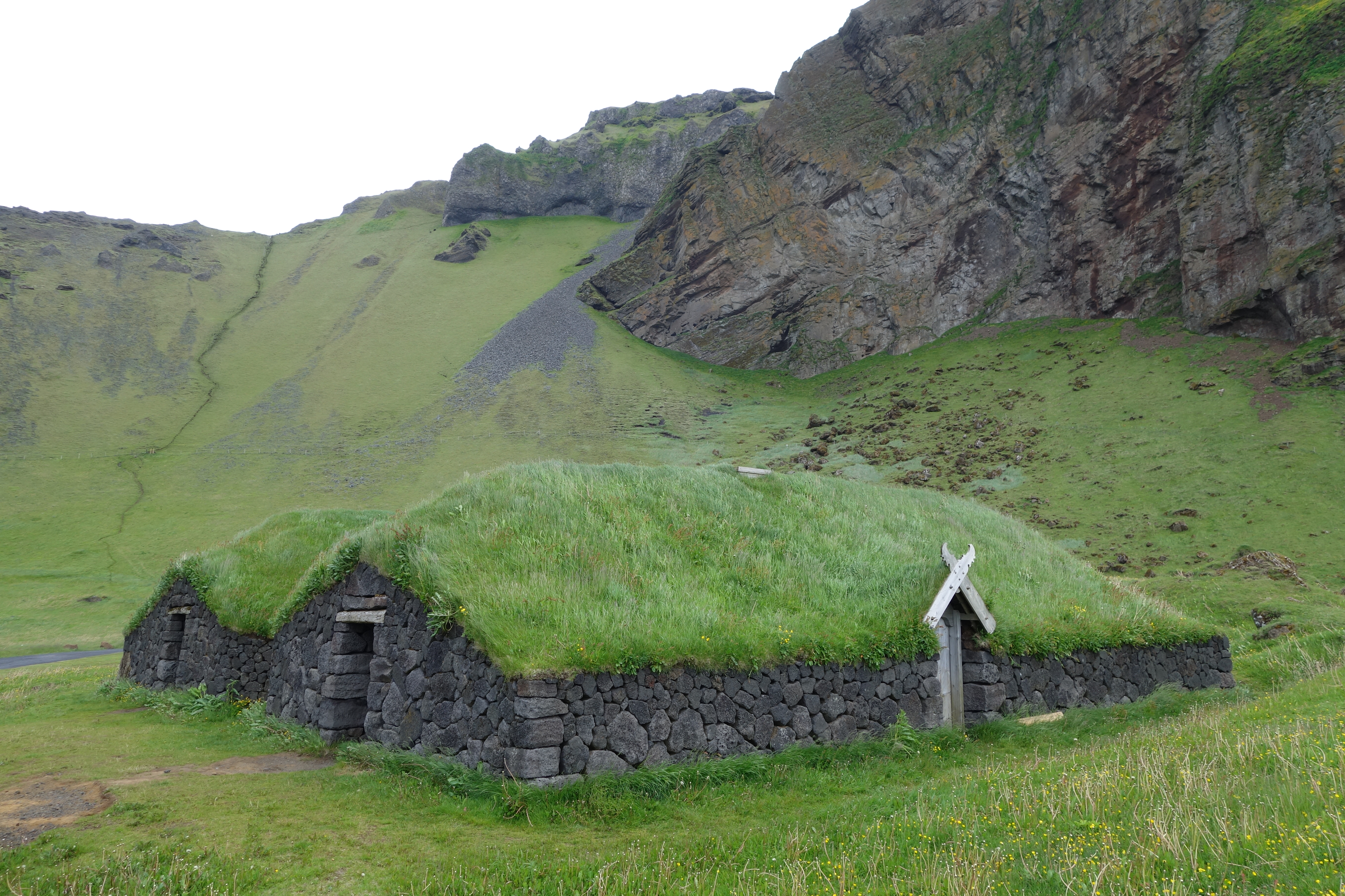 Kurze Randnotiz: erneut falle ich dem Irrglauben zum Opfer, dass es sich bei þorsmórk um eine Stadt handelt. Es ist im Grunde genommen gar nichts, außer ein von Bergen umzingeltes ehemaliges Gletscherplateau mit ein paar Hütten. Nichtsdestotrotz, birgt es die bis dato eindrucksvollste Landschaft meiner Reise. Am nächsten Tag begebe mich mich zu einem weiteren Basecamp, von dem aus mich ein Bus zurück in die relative Zivilisation mitnimmt. Ich lerne auf dem Weg allerdings zwei Niederländer kennen, die mir von einer Insel erzählen, die ich mir unbedingt Mal ansehen sollte. Nagut, wieso nicht? Ich habe eh noch ein paar Tage Zeit, nachdem ich ja meinen Laugavegur-Trek nicht gehen kann. Ich lasse mich also in Seljalandfoss absetzen, laufe ein Stündchen und fahre dann per Anhalter an den nahegelegenen Fährhafen, von dem aus es für mich nach Vestmannaeryjar geht. Was für eine Insel: die durch am Meeresgrund emporströmende Lava entstandene, sehr junge Insel hat eine unglaubliche Geschichte hinter sich. Nicht umsonst nennt man den Ort “Pompeji des Nordens”: rund ein drittel der Landmasse ist erst seit dem letzten Ausbruch des darunterliegenden Vulkans Eldfell, 1973, entstanden, zahlreiche weitere neue Inseln waren das Ergebnis, Tausende mussten fliehen. Es ist unglaublich zu sehen, wie sich unsere Welt eigentlich um Laufe der Zeit geformt haben muss. Island ist ein Fernrohr ins Kambrium unserer Erde: Wie sonst nirgendwo sonst kann man den Urzustand unseres Planeten hautnah miterleben. Auf der kleinen und höchst charmanten Insel Vestmannaeryjar gibt es zum Thema auch ein spannendes Museum. Wer sich für Vikinger interessiert, kann hier Nachbauten klassischer Vikinger-Häuser bestaunen. Davon abgesehen dient die Insel als zweitwichtigster Hafen für die Fischerei – an den Docks liegen daher zahllose Fischerboote an und wenn man auf das raue Meer hinausblickt, wird einem klar, dass “Walter Mitty” die extreme Realität von Fischern hier in Island abbildet.