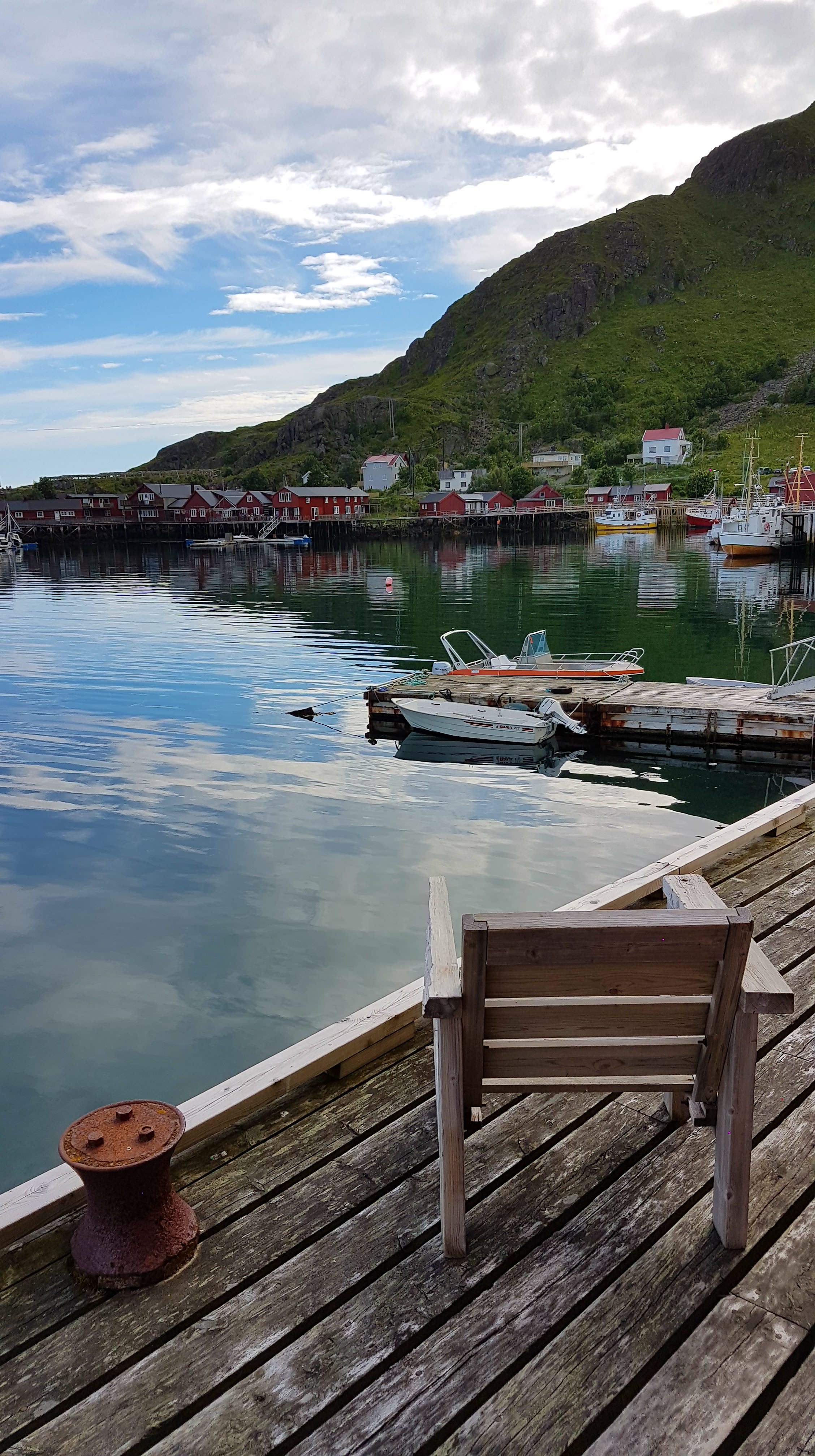 My passion for diving has led me to incredible places throughout the course of the past 34 months and my instinct doesn’t seem to fail me: having accepted a job offer in the Lofoten, I am now teaching Scuba courses such as Open Water Diver, Dry Suit and Deep Dive Specialties for a family owned little divecentre in the most charming little Norwegian fisher village: Ballstad is famous for its Cod Fish – a local delicacy that is to be dried in the outdoors for months, before it can be delivered and processed along its key chain, just to be exported all over the world. My little apartment is so close to the storage facilities, I sometimes feel/smell like I am about to be shipped off myself when I wake up in the morning (it’s a nice smell though. Hm, I probably got way too used to it…). When I said apartment before, I actually meant a boat house with a couple of rooms on the first floor. This is a house, where boat owners store their little motorboats, so I actually have to pass the storage hall to get to the stairs, which lead to the living area. One of many benefits is that I can open the main door, and if I was very clumsy (and probably blind), I could literally fall into the water. Why is this a benefit you ask? Well, the view from this pier over the small bay is absolutely stunning and the traditionally red painted wooden cabins/houses just in front of the water make for a lovely scenery.